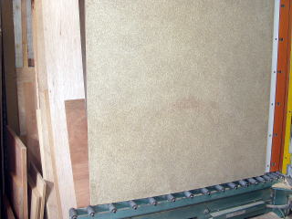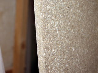 粉砕して接着剤で高温、高圧で固めたボードです。