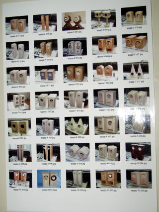 過去のスピーカーボックス 作品ですが、パソコン壊れて データーを失いました。 唯一写真に撮ってたものが ありましたので搭載しました。 小さくて見にくいですが オークション出品した一部です。 当初はエンクロージャー設計もいい加減な感たよりの物もあったとは思いますが たくさんの方々に落札頂き 気にいって頂き嬉しいメールを 頂いた時には、物を作る者として 一番の喜びです。 オクションを通じたくさんのお友達も増え、今後もよりよき物を提供できるようがんばりますので、よろしくお願いします。 |